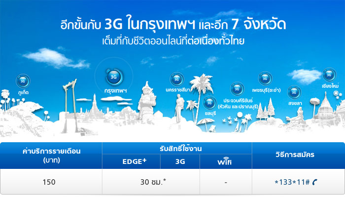 ตอนนี้คุณอยู่ที่ >> หน้าแรก >> Catalog โปรโมชั่นมือถือ >> หน้ารายละเอียด โปรโมชั่น AIS 3G 150 30hr ( AIS : เอไอเอส )