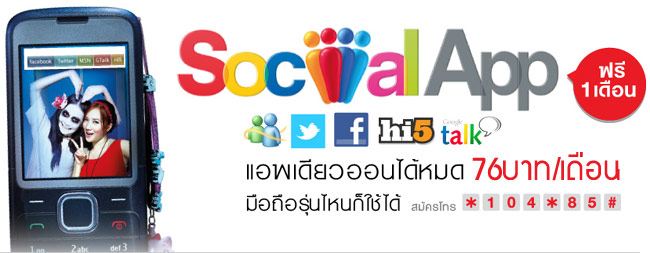 สมัครใช้งาน Social App ตั้งแต่วันนี้ ถึงวันที่ 31 กรกฎาคม 2554 รับสิทธิใช้งาน Social App ฟรี 30 วัน