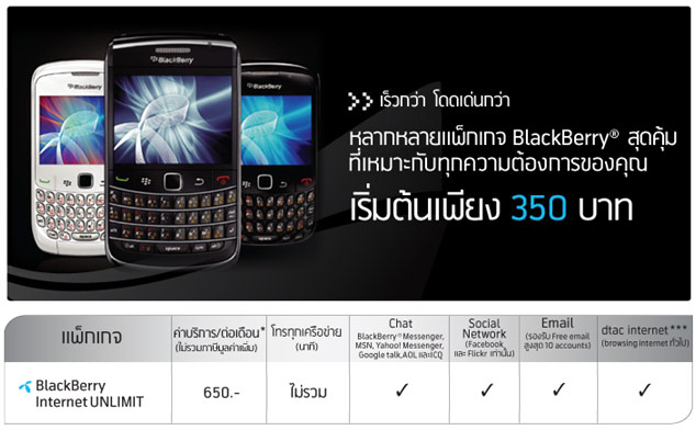 - ใช้งานบริการ BlackBerry ได้ทั้ง Instant Messaging + Email + Social Networking