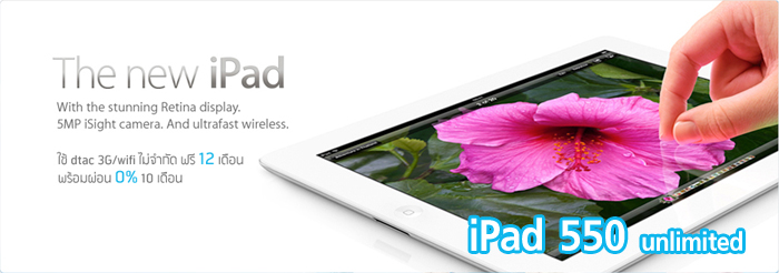 แพ็กเกจ The New iPad 550 unlimited (ซื้อเครื่องพร้อมแพ็กเกจ)