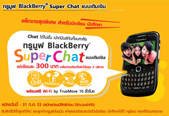ตอนนี้คุณอยู่ที่ >> หน้าแรก >> Catalog โปรโมชั่นมือถือ >> หน้ารายละเอียด โปรโมชั่น BlackBerry Super Chat ( TrueMove : ทรูมูฟ )