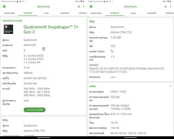 - ชิปเซ็ตประมวลผล Qualcomm Snapdragon 7+ Gen 3