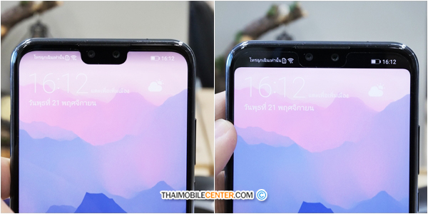 รอยบากที่อยู่ด้านบนของจอแสดงผล เป็นที่อยู่ของกล้องหน้าคู่ความละเอียด 16+2 ล้านพิกเซล และเซ็นเซอร์สำคัญต่างๆ รวมไปถึงลำโพงสนทนา