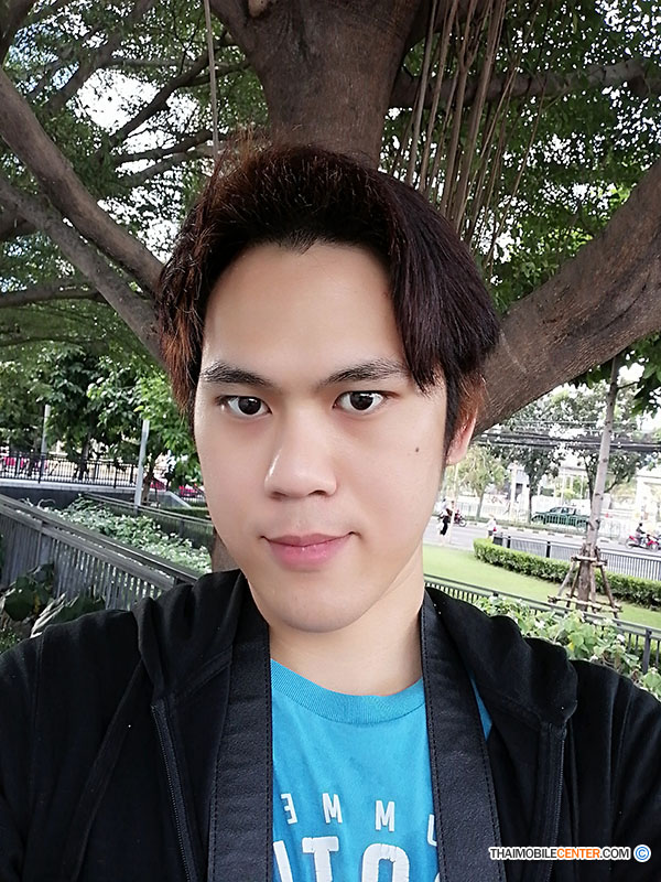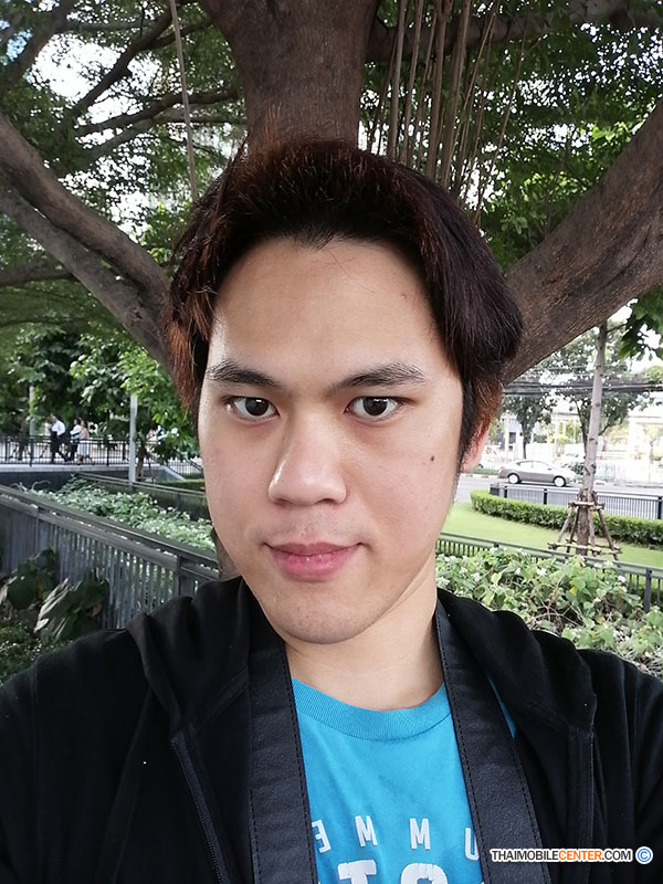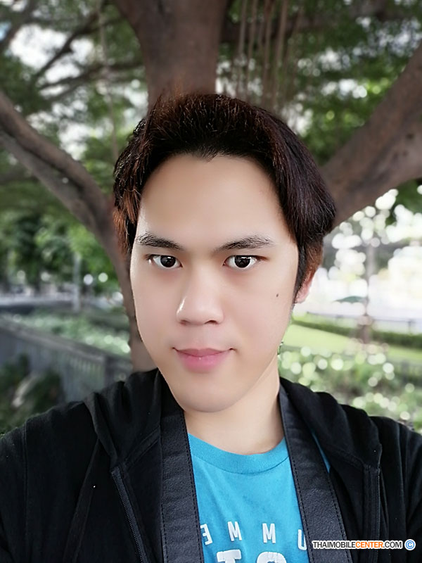 ตัวอย่างภาพถ่ายเซลฟี โหมดภาพถ่ายบุคคล เปิดโหมดบิวตี้ระดับ 10 (สูงสุด) และเปิดเอฟเฟ็กต์โบเก้