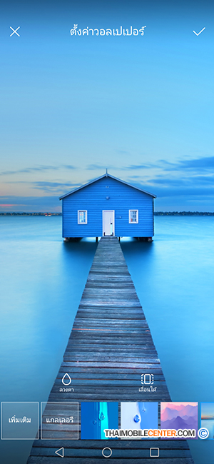ในการตั้งค่าวอลเปเปอร์ นอกจากจะเลือกรูปในแกลเลอรีแล้ว เรายังปรับความเบลอของวอลเปเปอร์ได้อีกด้วย ซึ่งจะช่วยให้เรามองเห็นไอคอนและตัวอักษรบนหน้าจอได้ชัดขึ้น ในกรณีที่รู้สึกว่าวอลเปเปอร์ลายตาเกินไปครับ