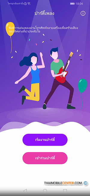 ฟีเจอร์ที่น่าสนใจอีกอย่างหนึ่งของ Huawei Y9 2019 คือ โหมดปาร์ตี้ ที่จะทำให้สมาร์ทโฟน Huawei หลายเครื่องเล่นเพลงเดียวกันไปพร้อมๆ กันได้ผ่านการเชื่อมต่อแบบ Bluetooth หากเราเลือก "เริ่มงานปาร์ตี้" เครื่องของเราจะเป็นเครื่องเล่นเพลงหลักที่เครื่องอื่นๆ สามารถเข้ามาร่วมวงได้โดยการสแกน QR Code ของเรา ในทางกลับกันหากเราเลือก "เข้าร่วมปาร์ตี้" ก็จะเป็นการสแกน QR Code เพื่อเข้าไปร่วมวงกับเครื่องอื่นนั่นเอง