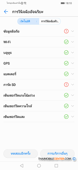 หากเราสงสัยว่าสมาร์ทโฟนมีปัญหา สามารถเลือกการวินิจฉัยอัจฉริยะ เพื่อตรวจหาความผิดปกติของตัวเครื่องได้ในเบื้องต้น และถ้าจำเป็นต้องส่งซ่อม เราก็สามารถตรวจสอบราคาอะไหล่ของสมาร์ทโฟน Huawei แต่ละรุ่น เพื่อคำนวณค่าใช้จ่ายในเบื้องต้นได้ ในกรณีที่ตัวเครื่องหมดประกันแล้วครับ