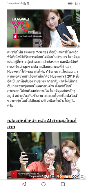สวัสดีครับ กลับมาพบกับรีวิวสมาร์ทโฟนรุ่นใหม่ล่าสุดโดยทีมงาน Thaimobilecenter กันอีกเช่นเคย ถึงแม้จะเข้าสู่ช่วงปลายปี 2018 แล้ว แต่ก็ยังมีสมาร์ทโฟนรุ่นใหม่ๆ เปิดตัวออกมาให้รีวิวกันอยู่เรื่อยๆ และสำหรับในวันนี้ ก็เป็นคิวของสมาร์ทโฟนสเปกคุ้มค่าราคาย่อมเยา Huawei Y9 2019 ครับ