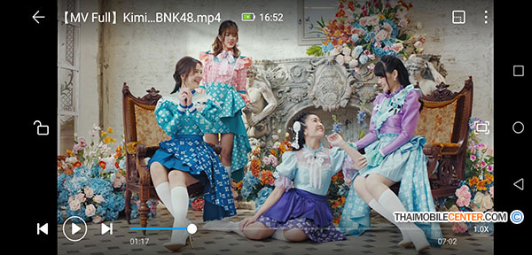 ในการเล่นวิดีโอ จะแสดงผลแบบเต็มจอ (Full Screen) ให้โดยอัตโนมัติ แต่จะแสดงผลตามอัตราส่วนดั้งเดิม (ซึ่งส่วนใหญ่มักจะเป็น 16:9) ทำให้เหลือขอบสีดำเอาไว้ที่ขอบซ้ายและขวาดังที่เห็นในภาพ
