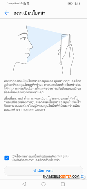 นอกจากการสแกนลายนิ้วมือแล้ว Huawei Y9 2019 ยังรองรับการสแกนใบหน้าด้วย ซึ่งสะดวกกว่า และใช้เวลาในการสแกนเร็วกว่าการสแกนลายนิ้วมือ หลังจากลงทะเบียนใบหน้าและเปิดใช้ฟีเจอร์นี้แล้ว เพียงแค่ใบหน้าของเราอยู่ในระยะของกล้องหน้า ตัวเครื่องก็จะปลดล็อกให้ในเสี้ยววินาที ซึ่งก็เป็นอีกทางเลือกหนึ่งสำหรับคนที่ไม่สะดวกที่จะสแกนลายนิ้วมือครับ