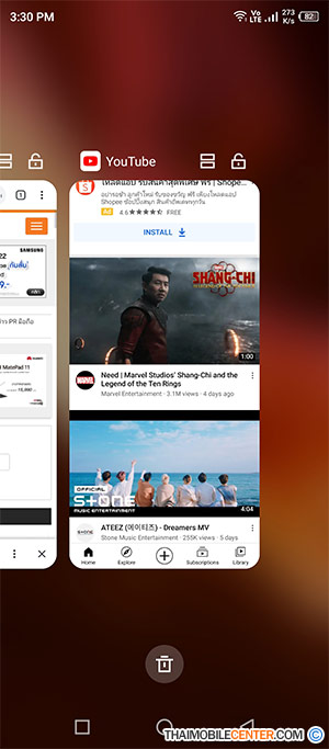 เมื่อกดปุ่ม Recent Apps จะพบกับหน้าแอปพลิเคชันทั้งหมดที่เปิดใช้งานเอาไว้ ซึ่งผู้ใช้สามารถเลือกปิดแอปพลิเคชันที่เปิดค้างเอาไว้ได้ เพียงแค่เลื่อนหน้าต่างแอปนั้นๆ ไปยังด้านบน หรือปิดแอปพลิเคชันทั้งหมดภายในครั้งเดียวได้อย่างง่ายดาย ด้วยการกดปุ่มไอคอนถังขยะที่ด้านล่าง