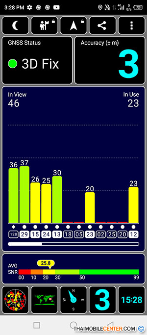 สามารถจับสัญญาณดาวเทียม GPS พร้อมรองรับระบบดาวเทียม GLONASS ของรัสเซีย โดยจากภาพตัวอย่างการทดสอบข้างต้นจะเห็นว่าสามารถจับสัญญาณดาวเทียมได้มีความแม่นยำ ในระดับบวกลบ 3 เมตร แต่อย่างไรก็ดีคุณภาพของสัญญาณดาวเทียม GPS ก็ขึ้นอยู่กับพื้นที่ ที่กำลังใช้งานอยู่ หรือสภาพอากาศด้วยนั่นเอง