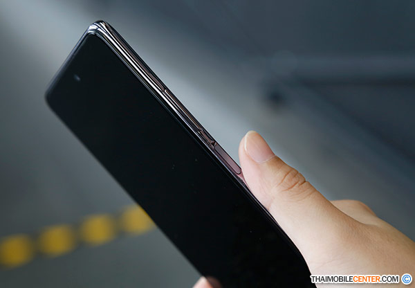 ด้านขวาของตัวเครื่อง มีเซนเซอร์สแกนลายนิ้วมือ พร้อมเป็นปุ่มเปิด-ปิดเครื่อง หรือล็อกหน้าจอไปในตัว รวมถึงปุ่มปรับระดับเสียง