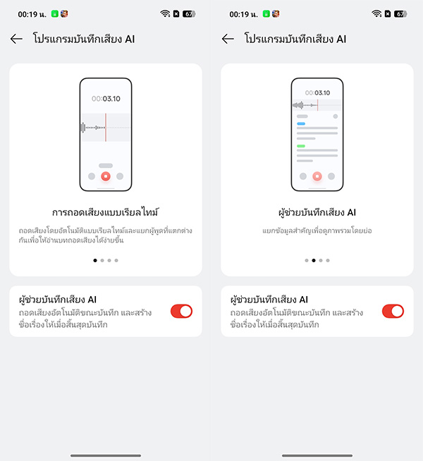 เวลาที่ต้องเข้าประชุม หรือฟังบรรยาย ฟีเจอร์ AI Recorder จะทำหน้าที่ถอดเสียงพูดแบบสด ๆ ในขณะที่กำลังบันทึกเสียงไปพร้อม ๆ กัน และที่สำคัญก็คือ สามารถจดจำได้ว่า ใครกำลังพูดอยู่ในสถานการณ์ตอนนั้นอีกด้วย