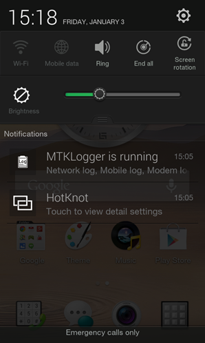 Notification Bar ที่อยู่ด้านบนนั้นจะมีการแจ้งเตือนสถานะต่างๆ และยังสามารถเลื่อนลงมาเพื่อ เปิด-ปิด ฟังก์ชันลัดต่างๆ ได้ ไม่ว่าจะเป็น การปรับแสงหน้าจอ, WiFi, ฮอตสปอต WiFi, การเชื่อมต่อข้อมูลแบบ 3G, โหมดการใช้งานของตัวเครื่อง, GPS และ บลูทูธ เป็นต้น