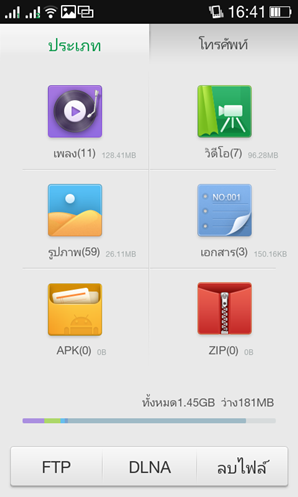 OPPO Joy มาพร้อมกับโปรแกรมเรียกดูไฟล์ ซึ่งสามารถเรียกดูไฟล์ และข้อมูลแบบแยกประเภทได้