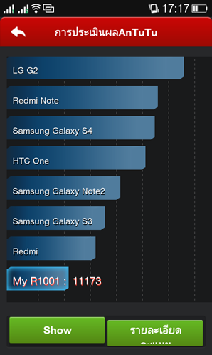 เมื่อทดสอบประสิทธิภาพการใช้งานด้วยโปรแกรม Antutu Benchmark ผลคะแนนจะออกมาอยู่ที่ 11173 คะแนน