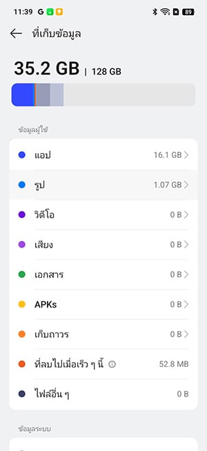 สำหรับพื้นที่จัดเก็บข้อมูลภายในให้มาที่ 128GB ซึ่งรองรับการใช้งานพื้นฐานได้อย่างเพียงพอ ทั้งการติดตั้งแอปพลิเคชัน การจัดเก็บรูปภาพ, วิดีโอ และไฟล์ต่าง ๆ