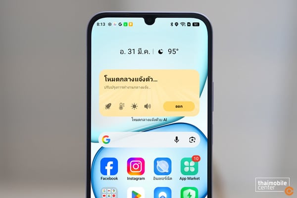 - โหมดกลางแจ้งด้วย AI เพิ่มความสว่างของหน้าจอสูงสุด 900 nits ใช้งานกลางแจ้งได้อย่างชัดเจน