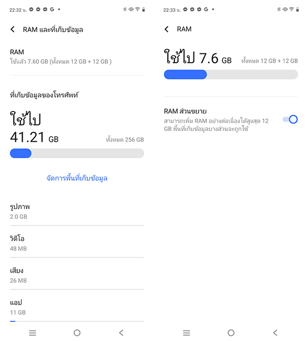 - หน่วยความจำแรม (RAM) แบบ LPDDR4X ขนาด 12GB