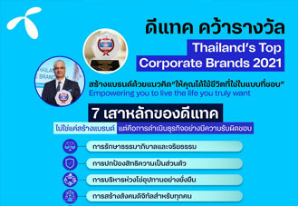 ดีแทคคว้ารางวัลทรงเกียรติจากงาน “ASEAN and Thailand’s Top Corporate Brands 2021” จากการประกาศผลงานวิจัยและมอบรางวัลให้แก่องค์กร ที่มีมูลค่าแบรนด์สูงสุดของประเทศไทยและในอาเซียน