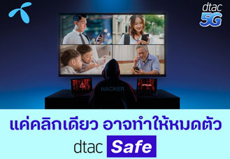 ดีแทคเปิดบริการ dtac Safe บริการใหม่ให้ลูกค้าดีแทคใช้เน็ตได้สบายใจ ไม่โดนหลอกลวงจากภัยไซเบอร์ ปลอดภัยจากแฮกเกอร์ ใช้งานง่าย สอดรับเป้าหมายการเป็นผู้ให้บริการอินเทอร์เน็ต