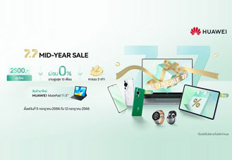 หัวเว่ย จัดโปรโมชันออนไลน์ “7.7 MID-YEAR SALE” มอบส่วนลดสูงสุดถึง 42% และคูปองส่วนลดมูลค่าสูงสุด 2,500 บาท กับขบวนสินค้าหัวเว่ยไม่ว่าจะเป็นแล็ปท็อป แท็บเล็ต สมาร์ทโฟน สมาร์ทวอทช์