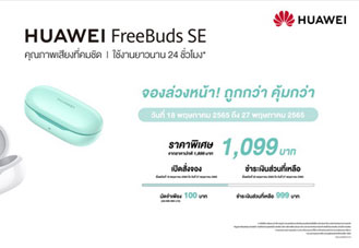 หัวเว่ย จัดโปรโมชันมอบดีลสุดพิเศษก่อนใคร เมื่อสั่งซื้อ HUAWEI FreeBuds SE หูฟังไร้สายแบบกึ่งอินเอียร์ใหม่ ฟังสบายต่อเนื่อง เชื่อมต่อง่ายทุกความรู้สึกในราคาสบายกระเป๋า