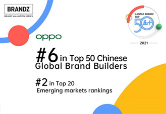จากรายงานการจัดอันดับ 50 อันดับแรกของ Kantar BrandZ™ Chinese Global Brand Builders 2021 ที่ได้จัดทำร่วมกันกับ Google และ KANTAR เผย ณ เซินเจิ้น ว่า OPPO ขึ้นแท่นอันดับที่ 6