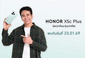 เปิดตัว HONOR X5c Plus สมาร์ตโฟนคุ้มค่าเริ่ม 2,999 บาท ชูแบต 5,260mAh ชาร์จ 15W กล้อง AI 50MP จอ 6.74" 90Hz และ RAM Turbo ขยายรวม 8GB เริ่มขาย 23 ม.ค. 2569