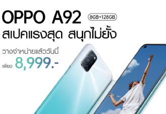 OPPO A92 สเปคแรงสุด สนุกไม่ยั้ง พร้อมให้คุณพบกับความสนุกได้ง่ายยิ่งขึ้น พร้อมตอบโจทย์ทุกการใช้งานในราคาใหม่เพียง 7,999 บาท จากปกติ 8,999 บาท ตั้งแต่วันที่ 20 ตุลาคม 2563 เป็นต้นไป