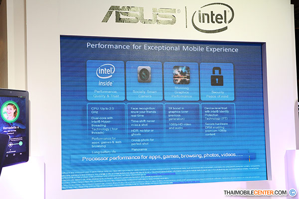 ซึ่งจะประกอบไปด้วย เลนส์กล้องความละเอียด 8 ล้านพิกเซล รวมไปถึงโลโก้ ASUS และ intel ที่อยู่ด้านล่างสุด