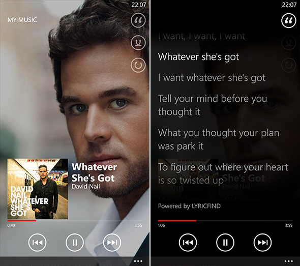 ในขณะเล่นเพลงคุณสามารถเลือกเปิดดูเนื้อเพลง ของเพลงนั้นๆ ได้ด้วย โดยจะมีการเลื่อนบรรทัดให้เอง เมื่อถึงคำร้องในท่อนนั้น คล้ายๆ กับการอ่านเนื้อคาราโอเกะ ซึ่งจะให้คุณสนุกไปกับการร้องตามเพลงของศิลปินที่คุณชื่นชอบ แสดงประวัติ และ Tweet ล่าสุดของนักร้อง ที่คุณกำลังฟัง