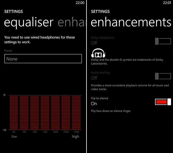 คุณสามารถปรับ Equaliser ได้ตามต้องการ ไม่ว่าคุณจะชอบเสียงทุ้ม, เสียงแหลม หรือรูปแบบอื่นๆ ซึ่งนอกจากการปรับด้วยตัวเองแล้ว ยังมี Preset หรือรูปแบบ Equaliser มาตรฐานหลายแบบให้คุณเลือกใช้ตามความชอบ โดยคุณจะสามารถปรับ Equaliser ได้ก็ต่อเมื่อคุณเชื่อมต่อ ชุดหูฟังเข้ากับ Nokia Lumia 1520 ของคุณแล้ว เพลิดเพลินไปกับ Mix Radio สถานีเพลงทั่วทุกมุมโลก