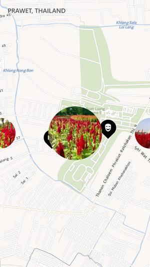 ที่มีฉากหลังเป็นแผนที่ ซึ่งแสดงพิกัด หรือสถานที่ของรูปนั้นๆ
