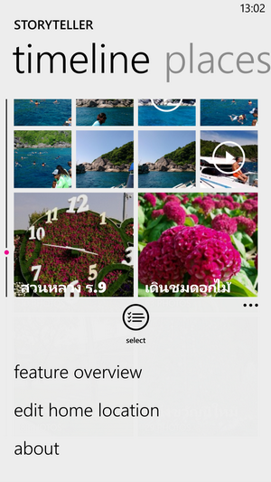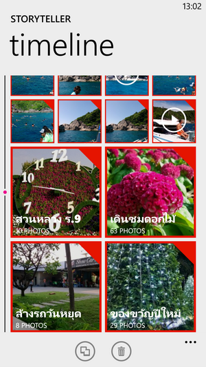Storyteller เรียกว่าหน้า Timeline ซึ่งจัดเรียงรูปภาพ