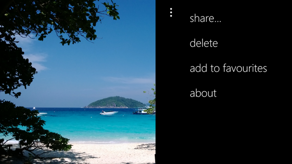 เราสามารถแชร์, ลบ, เพิ่มในรายการที่ชื่นชอบ และดูคุณสมบัติของรูปภาพได้