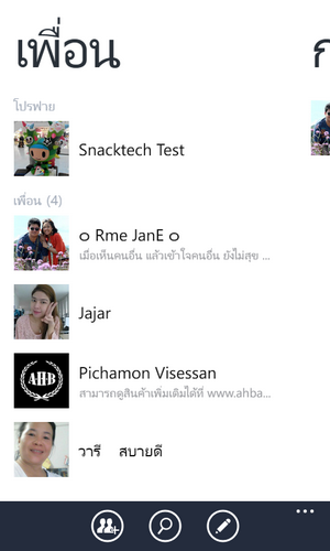 โดยแอพพลิเคชั่น Line บน Windows Phone จะมาหน้าหลักๆ อยู่ 4 หน้าด้วยกัน คือ รายชื่อเพื่อน, รายการแชท