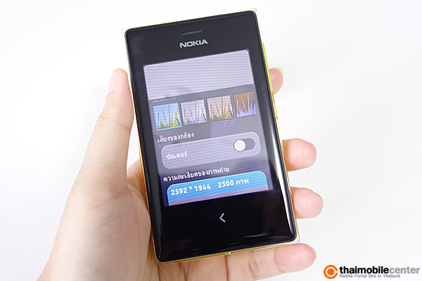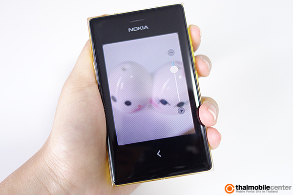 ซึ่งการกดชัตเตอร์บน Nokia Asha 503 นั้น ทำได้ง่ายๆ เพียงแค่สัมผัสไปบนหน้าจอ ก็สามารถถ่ายภาพได้แล้ว เรียกได้ว่า สะดวกและรวดเร็วมากทีเดียว โดยระบบการโฟกัสภาพบน Nokia Asha 503 นั้น เป็นแบบ Fixed Focus