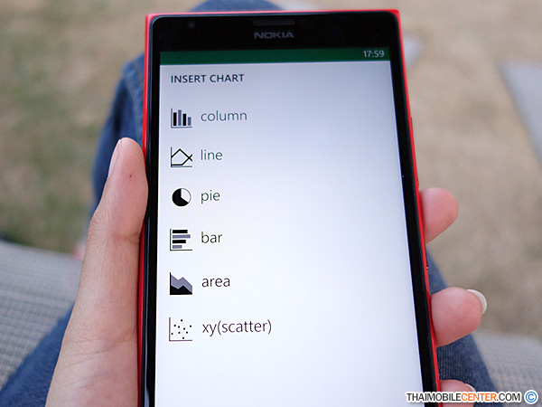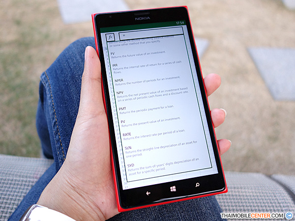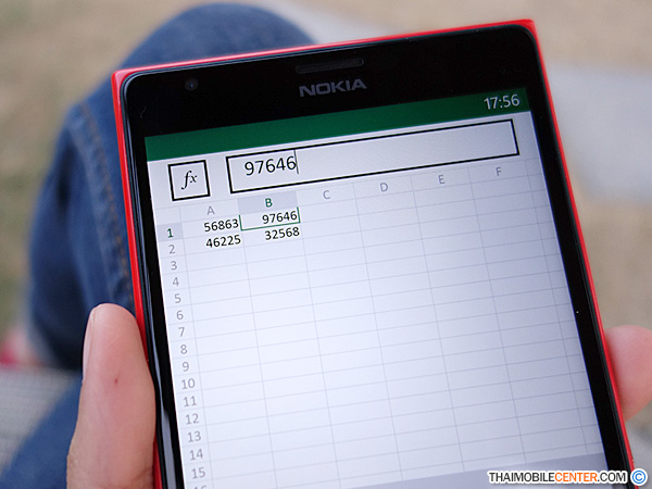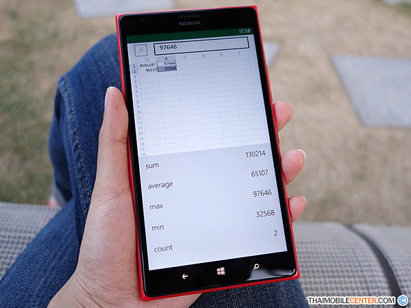 นอกเหนือไปจากการพิมพ์ ตัวเลข หรือ ตัวอักษรแล้ว Excel บน Nokia Lumia 1520 นี้ ยังรองรับการใช้งาน ฟังก์ชันทางคณิตศาสตร์อีกมากมาย ซึ่งผู้ที่คุ้นเคยกับการใช้งาน บนคอมพิวเตอร์เดสก์ท็อปมาก่อน จะใช้งานในส่วนนี้ได้ไม่ยาก
