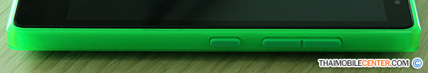 ด้านขวาของตัวเครื่อง : ปุ่มสำหรับ เปิด-ปิด เครื่อง หรือ Lockscreen และปุ่มสำหรับ เพิ่ม-ลด ระดับของเสียง ได้มีการออกแบบได้พอดีกับนิ้วมือเลยทีเดียว จากภาพ คือ การถือด้วยมือซ้ายจะสามารถสั่งงานด้วยนิ้วชี้เพียงนิ้วเดียวได้ ทั้งปุ่ม เปิด-ปิด เครื่อง และปุ่ม เพิ่ม-ลด ระดับของเสียง
