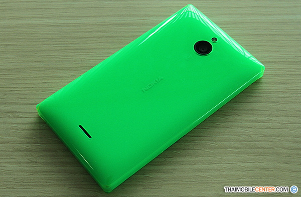 ด้านหลังของตัวเครื่อง : อย่างที่กล่าวไว้ข้างต้น คือ ตัวเครื่องของ Nokia X2 Dual SIM จะเป็นวัสดุแบบ Translucent Outer Layer ที่มีความแข็งแรง และมีคุณภาพ และมีสีสัน สดใส เหมาะกับผู้ใช้งานทุกเพศ ทุกวัย อย่างแน่นอน นอกจากนี้ Nokia X2 Dual SIM ยังมาพร้อมกับกล้องดิจิตอลตัวหลักที่ด้านหลังของตัวเครื่อง ความละเอียด 5 ล้านพิกเซล พร้อมไฟแฟลช LED สำหรับถ่ายภาพสิ่งต่างๆ ที่ต้องการได้ ซึ่งภาพที่ได้ ก็มีความคมชัดในระดับที่น่าพอใจ ที่สำคัญคือ มีไฟแฟลช LED ช่วยให้ถ่ายภาพในที่แสงน้อยได้อีกด้วย ส่วนท่านใดที่ชอบฟังเพลงผ่านลำโพงเสียงภายนอก เจ้า Nokia X2 Dual SIM ก็มีให้ใช้งานเช่นเดียวกัน