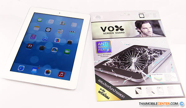 Vox Anti Shock Film ที่นำมารีวิวนั้น เป็นฟิล์มสำหรับติดหน้าจอ iPad ซึ่งสามารถติดได้ทั้ง 3 รุ่น ได้แก่ iPad 4, iPad 3 และ iPad 2 โดยสามารถตรวจสอบรุ่นที่รองรับได้จากมุมด้านซ้ายของแพ็กเกจ