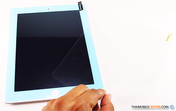 ต่อมาให้ดึงสติ๊กเกอร์ลำดับที่ 1 ออกมาเล็กน้อย และนำฟิล์มชั้นในไปติดที่ขอบหน้าจอ โดยฟิล์มชั้นในนั้นจะติดหน้าจอแบบอัตโนมัติ และเราสามารถดึงสติ๊กเกอร์ลำดับที่ 1 ออกแบบง่ายดาย ซึ่ง Vox Anti Shock Film นั้นจะไล่อากาศที่อยู่บนหน้าจอออก โดยอัตโนมัติแบบที่เราไม่ต้องดึงฟิล์ม ขึ้น-ลง หลายๆ รอบ เพื่อไล่อากาศออก