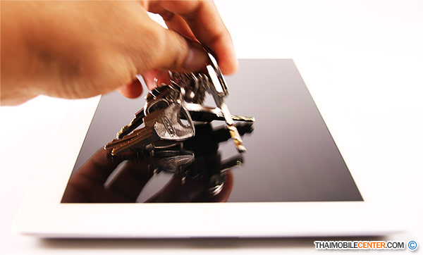 การทดสอบด้วยพวงกุญแจ จะสังเกตเห็นได้ว่ารอยขีดขวนบนหน้าจอนั้น แถบจะไม่เกิดขึ้นให้เห็นเลยก็ว่าได้