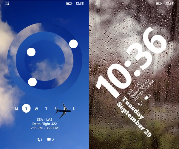 Lock Screen ที่สวย และเจ๋งกว่าเดิม Windows Phone 8.1 มีการแต่งหน้าทาปากหน้าจอ Lock Screen เสียใหม่ให้ดูสวย และทำอะไรได้มากกว่าที่เคย สามารถปรับเปลี่ยนการแสดงนาฬิกาได้หลายรูปแบบ ทั้งยังสามารถแสดงรายละเอียดเพิ่มเติม อาทิ ข้อมูลของเที่ยวบิน, ภาพพื้นหลังของ Lock Screen ที่เปลี่ยนได้ตามใจชอบ และยังมีการนำระบบ Cortana มาผสานรวมเข้ากับ Lock Screen ซึ่งผู้ผลิตสมาร์ทโฟนรายต่างๆ สามารถปรับแต่งรูปแบบของ Lock Screen ได้ตามต้องการ
