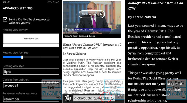 การมาถึงของเว็บบราวเซอร์ IE 11 (Internet Explorer 11) Internet Explorer 11 เว็บเบราว์เซอร์หลักของ Windows Phone 8.1 มีการอัพเดทในหลายๆ จุด ไม่ว่าจะเป็น YouTube Player เวอร์ชันใหม่ ที่รองรับการแสดงคำบรรยายในคลิปวีดีโอ (Close Caption) ด้วยเทคโนโลยี HTML5 ทั้งยังรองรับเทคโนโลยี WebGL ด้วย แอพพลิเคชั่นใหม่ๆ เพิ่มประสิทธิภาพการทำงาน