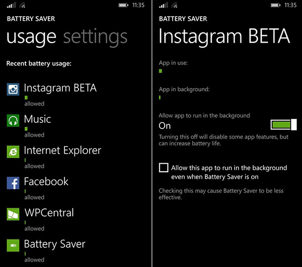 แอพพลิเคชั่น Battery Saver ตรวจสอบว่าแอพพลิเคชั่นแต่ละตัวใช้พลังงานแบตเตอรี่มากน้อยขนาดไหน ทั้งยังสามารถสั่งปิดการทำงานฟีเจอร์บางอย่างของแอพพลิเคชั่น เพื่อลดการใช้พลังงานลงได้ด้วย