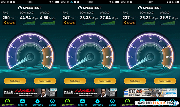 เป็นอย่างไรกันบ้างครับกับการทดสอบความเร็วอินเทอร์เน็ตจากแพ็กเกจโรมมิ่ง (Roaming) ของค่ายต่างๆ จะเห็นได้ว่าแต่ละค่ายก็มีจุดเด่นในการใช้งานที่แตกต่างกันออกไป ซึ่งทีมงานก็ขอให้ผู้ใช้ศึกษารายละเอียดของแพ็กเกจให้ดีเสียก่อน ก่อนที่จะตัดสินใจเลือกใช้นะครับ เพราะประเทศจีนเป็นประเทศที่กว้างใหญ่มาก บางเมืองก็อาจจะจับสัญญาณได้แตกต่างกันออกไป แต่สำหรับเมืองเซี่ยงไฮ้นั้นเป็นเมืองใหญ่ และเป็นเมืองธุรกิจที่มีการพัฒนาเทคโนโลยีต่างๆ ให้ใช้งานได้อย่างทั่วถึง จึงทำให้ระดับสัญญาณน่าจะค่อนข้างดี และสามารถใช้เป็นพื้นฐานในการตรวจสอบข้อมูลได้