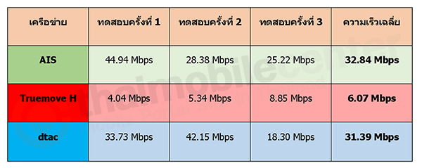 ความเร็วเฉลี่ยรวมจากการทดสอบ 3 ครั้ง - ดาวน์โหลด 32.84 Mbps, อัปโหลด 23.83 Mbps